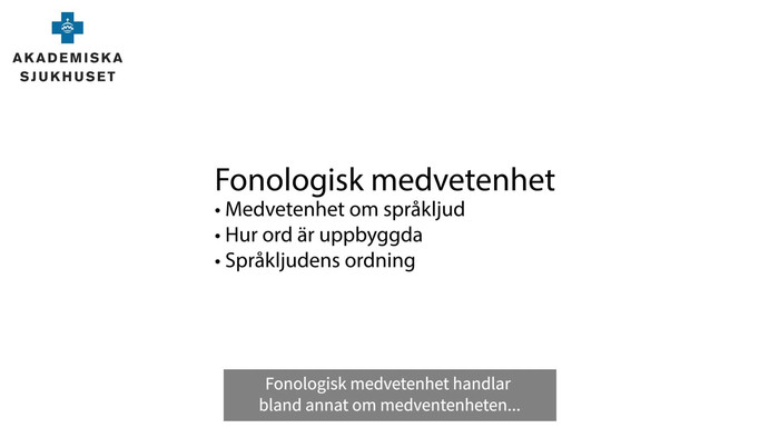 Fonologisk medvetenhet handlar bland annat om medvetenheten om språkljud, om hur ord är uppbyggda och insikten att ord är uppbyggda av flera olika språkljud. Det handlar också om i vilken ordning språkljuden kommer i ord. Fonologisk medvetenhet ligger till grund för att barnet senare ska lära sig koppla språkljud till bokstäver, alltså barnets läs- och skrivinlärning. En god fonologisk medvetenhet underlättar också för barnet när barnet ska lära sig nya ord.
