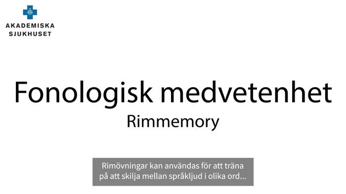 Lite längre ned på sidan hittar du filmer där vi visar övningar för att träna uttal samt material att skriva ut för att träna hemma.