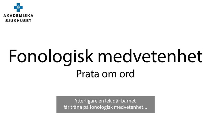 Nedan hittar du informationsfilmer om uttalssvårigheter i tre delar. Första delen tar upp språkutveckling, typisk uttalsutveckling, fonologisk språkstörning och vanliga uttalssvårigheter bland barn. Andra delen tar upp lek och inlärning, hur du som vuxen är språkmodell, positiv språkstimulans och hur du kan anpassa uttalsträningen efter ditt barn. Tredje delen tar upp uttalsträningens olika steg och när och hur ofta ni kan träna hemma.