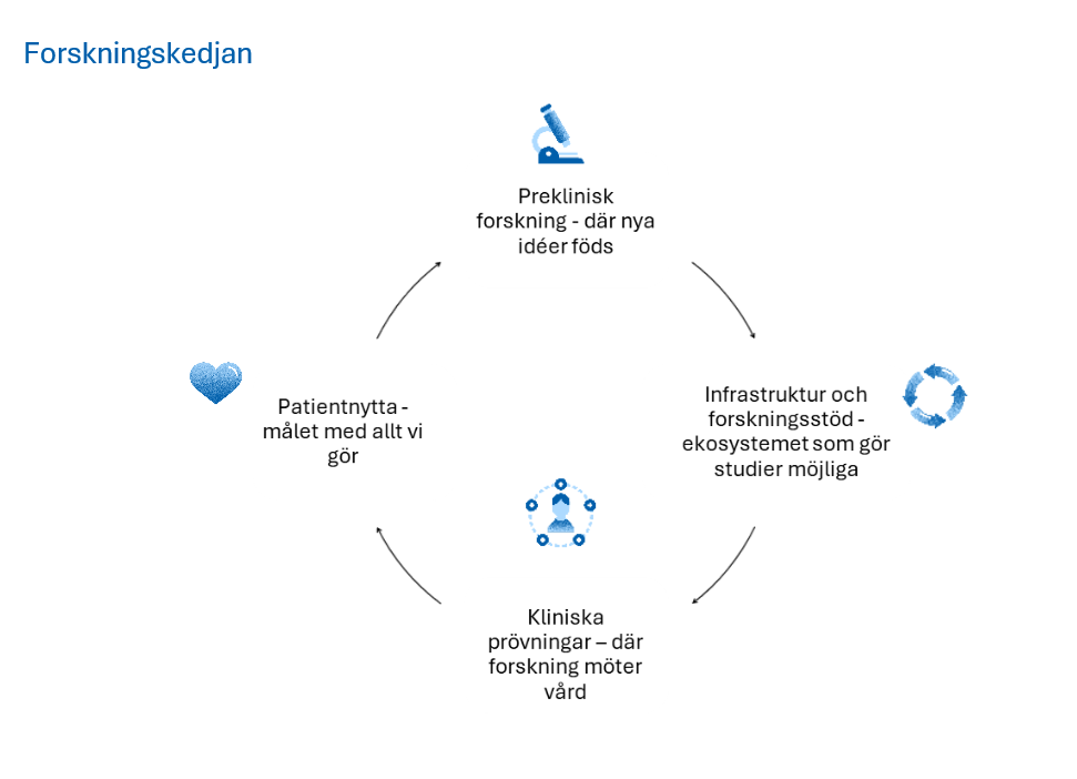 Hur blir en idé i laboratoriet en behandling som räddar liv? Den 20 maj uppmärksammar vi klinisk forskning på Akademiska sjukhuset. Under temat ”Så blir forskning till vård” visar vi hur hela forskningskedjan hänger ihop – från preklinisk forskning till kliniska prövningar och konkret patientnytta.