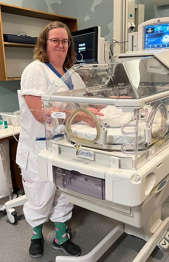 – En utmaning inom förlossningsvården är att det ibland känns som att jag inte räcker till, särskilt när det är mycket att göra. Tempot kan vara högt, och det gäller att hitta balansen för att vara delaktig och stödjande i det arbetet. På intensivvårdsavdelningen för nyfödda är tempot oftast lugnare men det finns mycket att göra och vi har fler patienter ta hand om. Här är det även utmanande att ge det bästa möjliga stödet till familjerna som ligger inlagda.