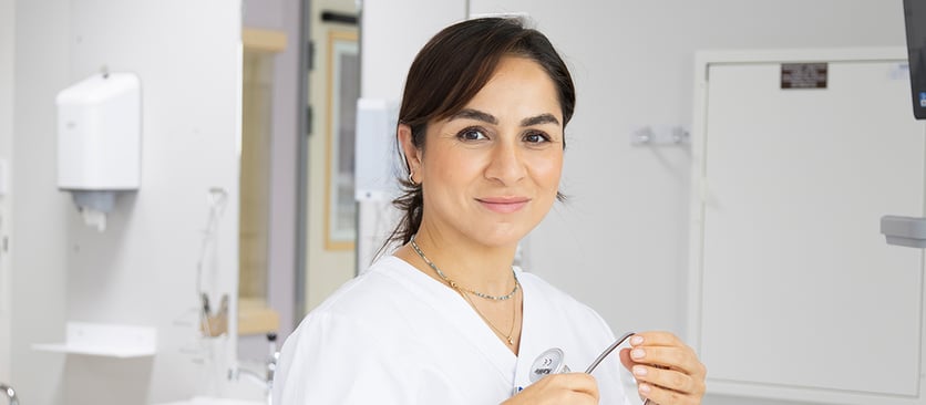 – Vi samarbetar mycket med andra professioner, till exempel fysioterapeuter, kuratorer och dietister. Vi är ett välkomnande gäng som har roligt tillsammans. Vi månar om våra nyanställda och har högt i tak. Våra chefer lyssnar på alla och är öppna i sinnet för olika förslag. Det finns ofta möjlighet att anpassa arbetstider och uppgifter för att alla ska få ihop sina livspussel, vilket bidrar till en bra arbetsmiljö.