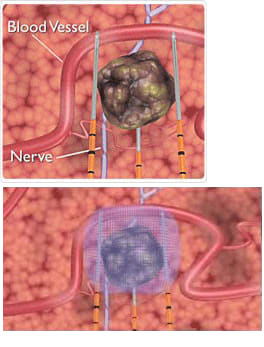 - Irreversibel Elektroporation, IRE, är en ny behandling med elektriska fält som ges inom ramen för kliniska studier; ett alternativ när operation inte är möjlig, det vill säga, att cancerceller dödas med hjälp av elektrisk ström som leds via nålliknande elektroder. Används på Akademiska endast vid lokalt avancerad cancer inte vid spridd sjukdom.
