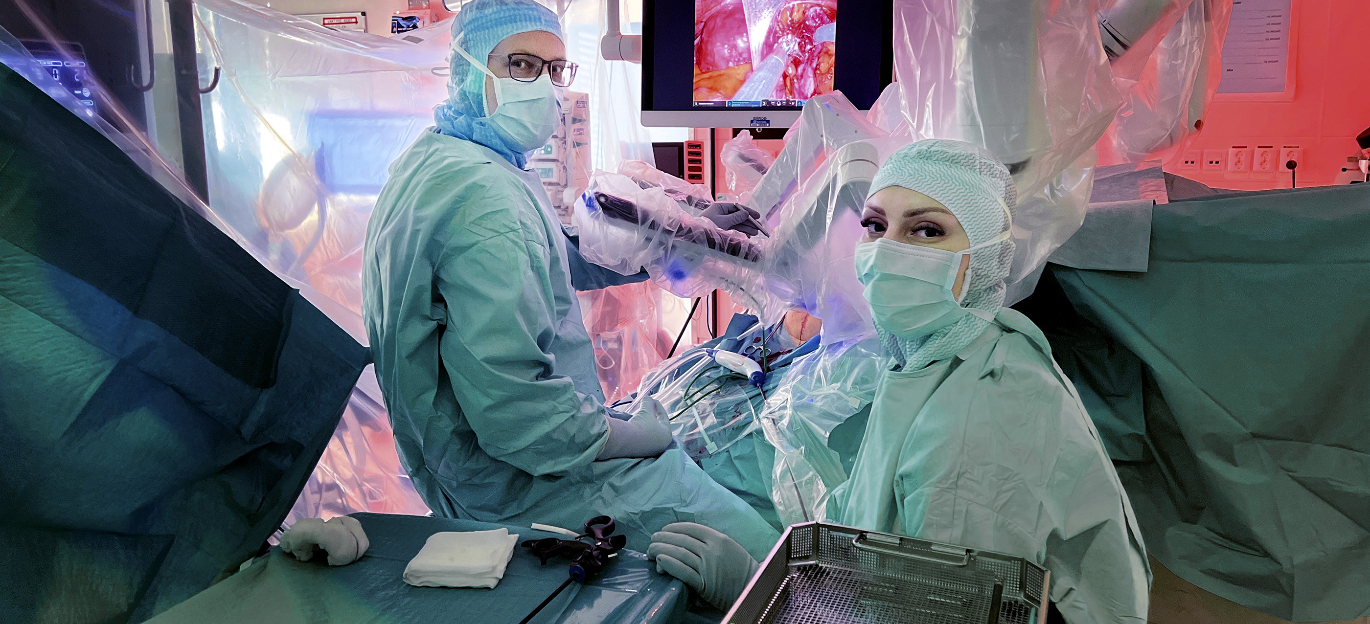 Endometrioskirurgi blir allt vanligare på Akademiska. På bilden visar överläkare Christian Moberg och operationssköterska Emma Heshmati Högrelius hur en robotoperation går till. Foto: Rora Rahwa Hagos.