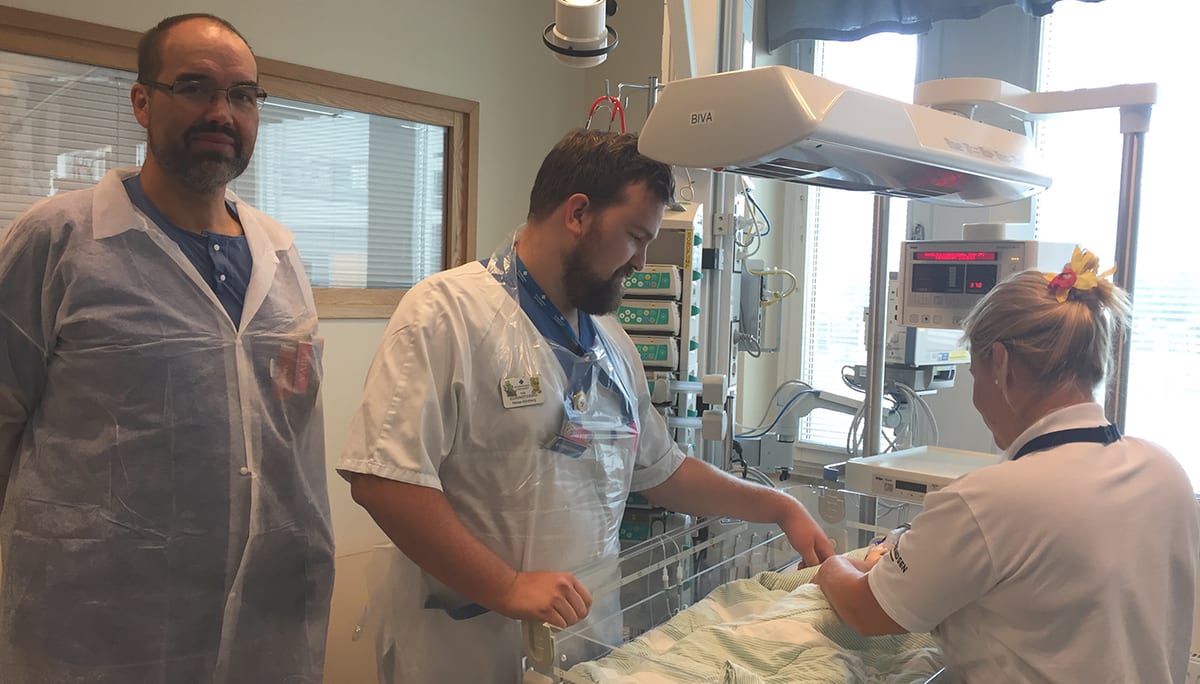 Barnintensiven på Akademiska har öppnats igen. På bilden syns från vänster: Rainer Dörenberg, Niklas Klintberg och Zara Olsson.