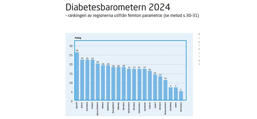 Det är tredje året som Svenska Diabetesförbundet publicerar Diabetesbarometern, en rapport som jämför regionerna när det gäller genomförda uppföljningar av patienters hälsa och behandlingsresultat. Rapporten baseras på en enkät som besvarats av personer med diabetes samt behandlingsresultat från Nationella Diabetesregistret för 2023. Enligt Jarl Hellman gör detta sammanställningen unik och mycket mer djup kontra enbart registerdata. Svarsresponsen för enkäten låg kring knappt 40 procent. Cirka hälften av de svarande har typ 1, resten typ 2-diabetes.