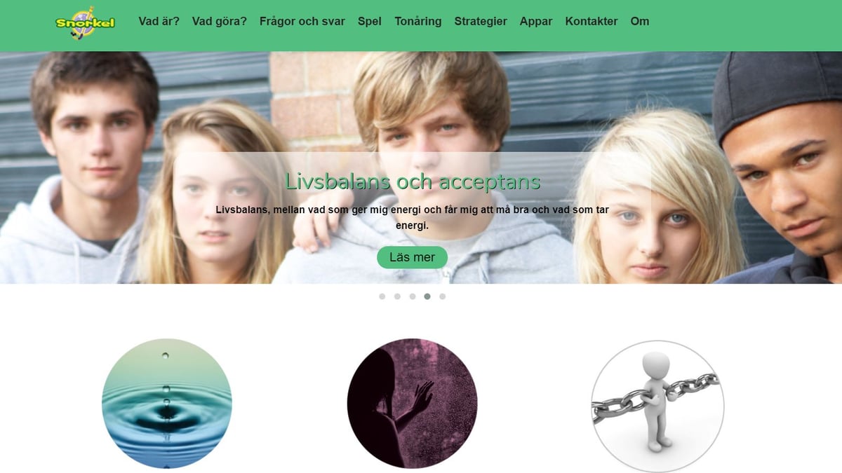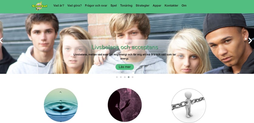 - Inom barn- och ungdomspsykiatrin används webbsida och Snorkels appar som komplement till annan behandling.
