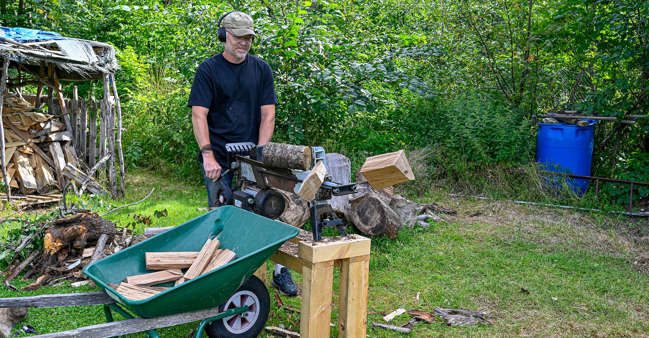 Arbete med automatisk vedklyv är en vanlig orsak till handskador. Uppmaningen från handkirurger på Akademiska är att arbeta ensam och aldrig slarva med klingskyddet. Foto: Mostphotos
