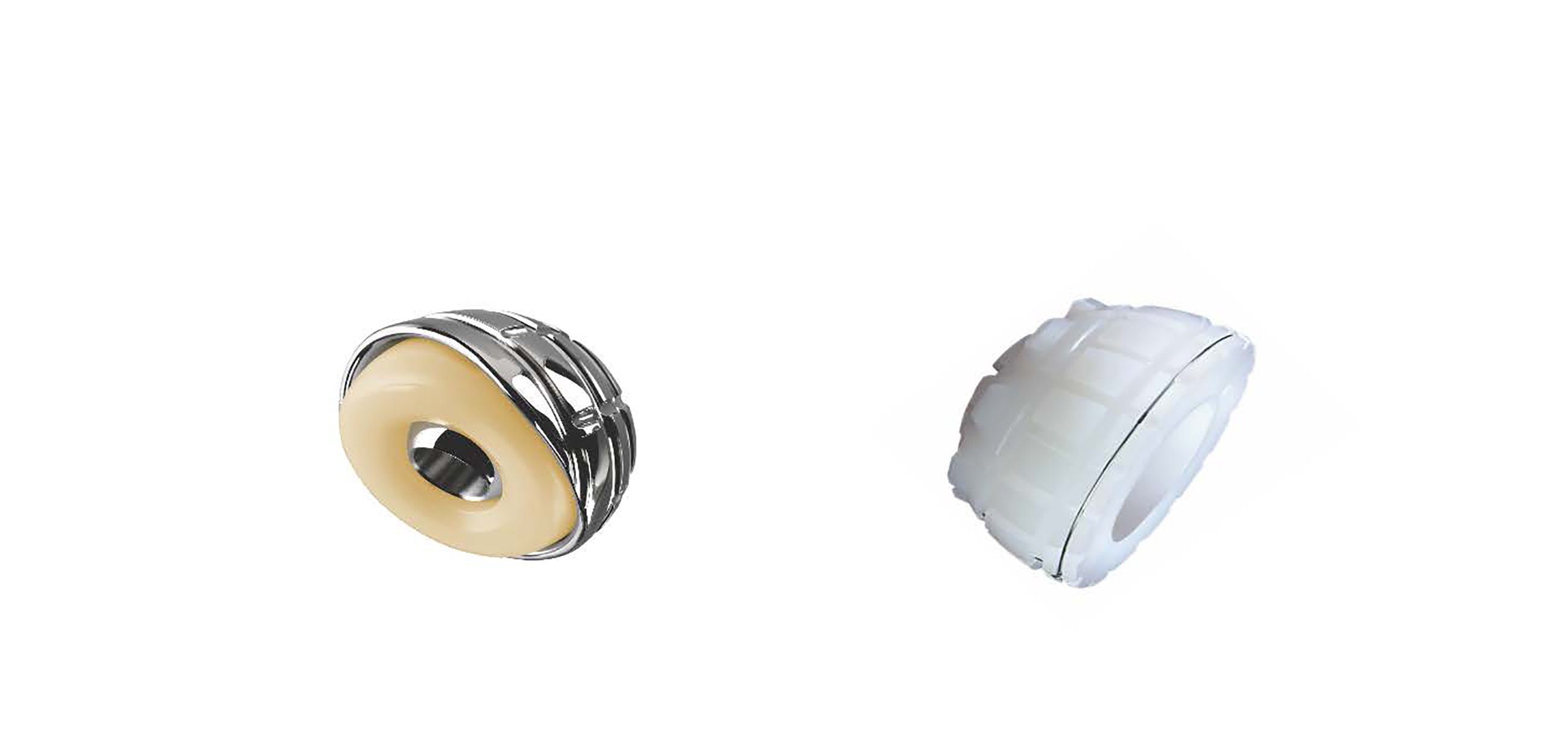 I dualitystudien ska forskarna studera om man kan minska frekvensen ur-led-hoppning efter att man opererat en felställd lårbenshalsfraktur med höftprotes.Till vänster syns den nya sortens höftprotes, dubbelcup, och till höger en så kallad standardcup.
