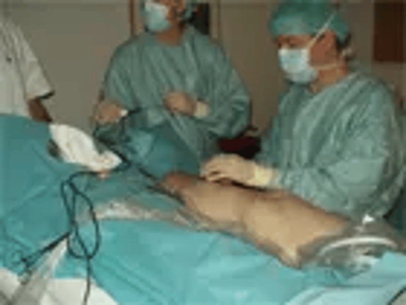 Nästan var femte person i Sverige drabbas av åderbråck i någon form. På Akademiska sjukhuset införs nu en modern operationsmetod – radiofrekvensablation – som ett alternativ till tidigare behandling, då blodådrorna dras ut via ljumsken. Operationen görs i lokalbedövning och patienten kan gå hem redan 20-30 minuter efter ingreppet. – Vi opererar omkring 75 patienter årligen för åderbråck. Hittills har sex patienter opererats med den nya metoden som kommer att bli första alternativ, säger kärlkirurg Gustaf Tegler. Målgruppen är patienter med så kallad huvudstamsinsufficiens i kombination med hudförändringar såsom eksem och/eller sår. Flera långtidsstudier har visat att behandlingsresultaten är jämförbara med tidigare operationsmetoder. Den nya operationsmetoden, Radiofrequency ablation (RF) innebär att de sjuka blodådrorna (vener) i benen utsätts för pulserande värme som förstör kärlväggens insida, vilket leder till att ådern skrumpnar. Under ingreppet tillförs en kall bedövningsvätska runt ådern för att optimera behandlingsresultatet och för att undvika skador på intilliggande vävnader. Ultraljud guidar kärlkirurgen under ingreppet, dels under själva punktionen av åderns som oftast görs i knäledsnivå, dels för att positionera kaketerspetsen i ljumsken. Det är inte, som man skulle kunna tro, blodkärl under knäet, utan segmentet från ljumsken och ner på låret som åtgärdas. Enligt Gustaf Tegler finns flera fördelar med den nya operationsmetoden. Ingreppet görs i lokalbedövning så patienten slipper narkos alternativt ryggmärgsbedövning. Därför kan operationen i princip utföras på ett vanligt mottagningsrum. Åderbråck uppstår i vener (ådror eller blodkärl) som leder det syrefattiga blodet tillbaka till hjärtat. Klaffar, som normalt ser till att blodet inte rinner tillbaka nedåt, är satta ur funktion, vilket leder till läckage och svullnad. Ytliga åderbråck syns som blå, knöliga upphöjningar men i svårare fall har patienterna brunaktiga missfärgningar på huden, kliande eksem och bensår. Upprepade ytliga proppar i venerna förekommer också. Mer information: Gustaf Tegler, kärlkirurg, 018-611 00 00 vx Elisabeth Tysk, presschef, 070-622 24 21