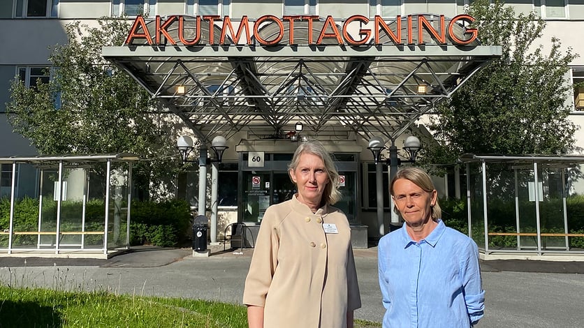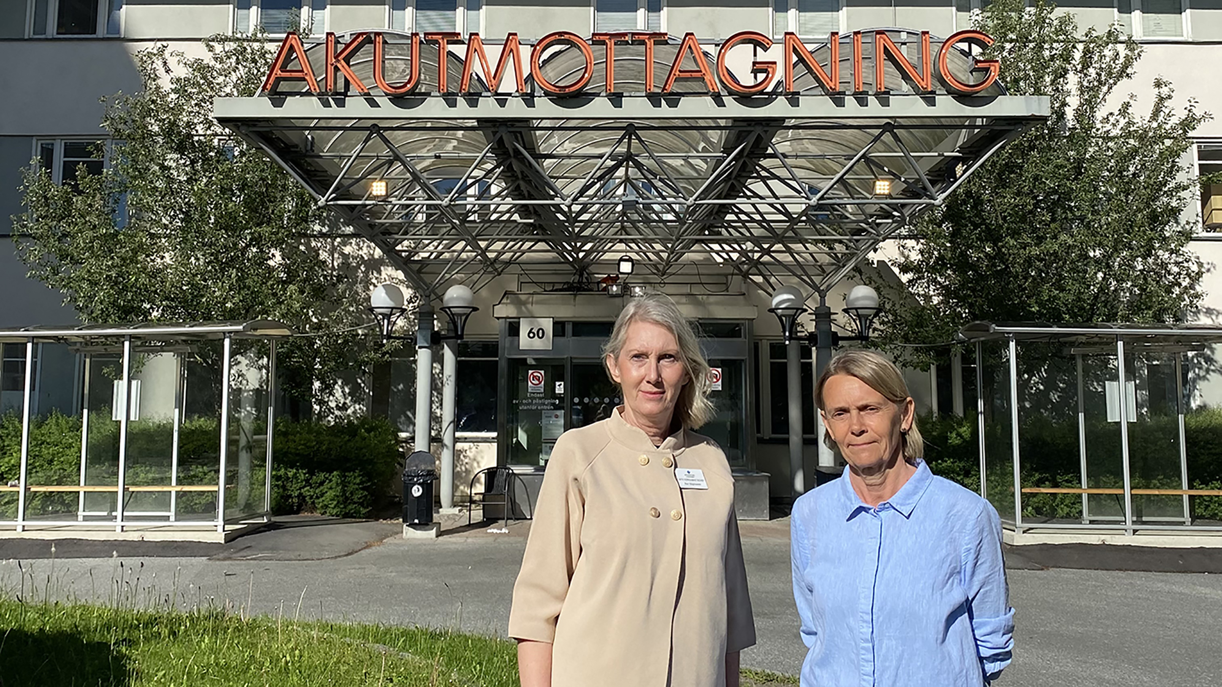 Många personer med beroende och annan sjuklighet uppsöker ofta akutmottagningar. Efter sommaren startar specialistpsykiatrin vid Akademiska sjukhuset två pilotprojekt tillsammans med Enköpings och Tierps kommuner för att förbättra samverkan och erbjuda mer synkat stöd. På bilden syns från vänster Åsa Magnusson, bitr verksamhetschef beroende- och neuropsykiatri, och Karin Lindersson, projektledare för samsjuklighetsprojektet.