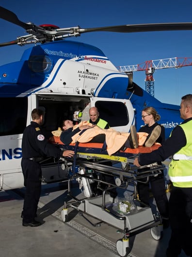 Du har en svårt sjuk patient i akut behov av förflyttning och fortsatt intensivvård. Vi har utrustningen, kapaciteten och personalen som gör det på bästa sätt. Ring oss. Helikoptern är i luften inom 10 minuter, 30 minuter om det är på natten.