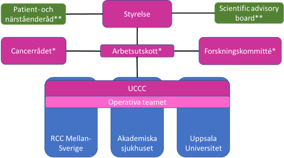 UCCC är en formalisering av ett redan starkt samarbete mellan Akademiska sjukhuset, Uppsala universitet och Regionalt cancercentrum (RCC Mellansverige). Centret samlar dessa verksamheter för att i en effektiv och lärande organisation arbeta på ett strukturerat och datadrivet sätt med kontinuerliga förbättringar av vård, forskning och utveckling inom cancerområdet.